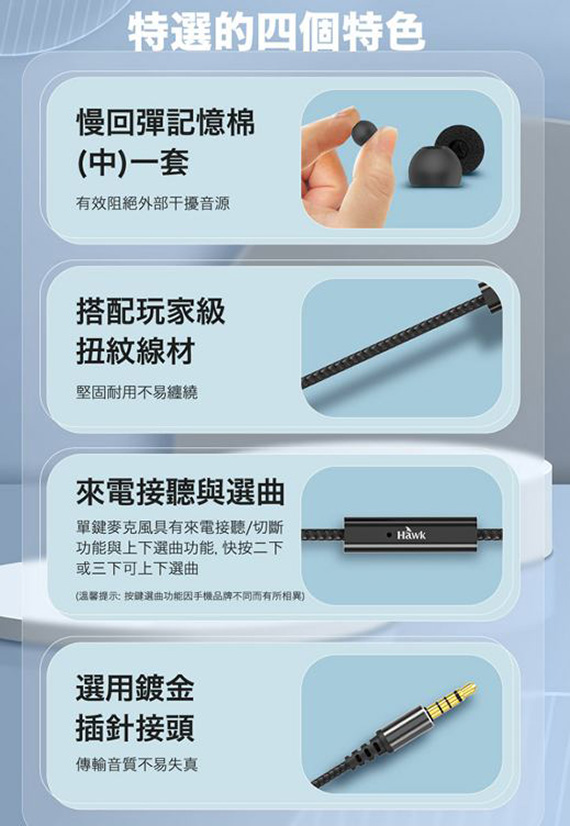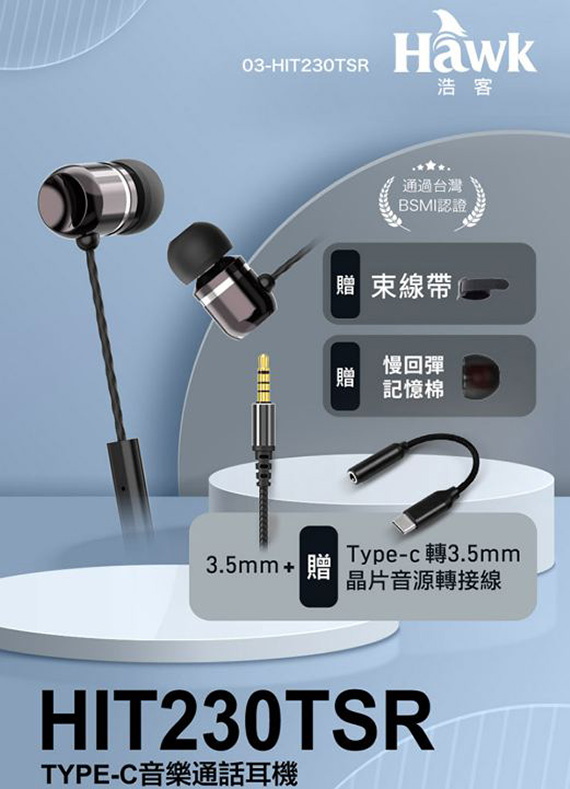 eSENSE逸盛 03-HIT230TSR Hawk 鋁合金TYPE-C音樂通話 入耳/耳道式耳機麥克風