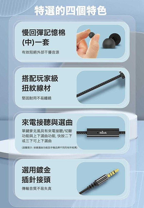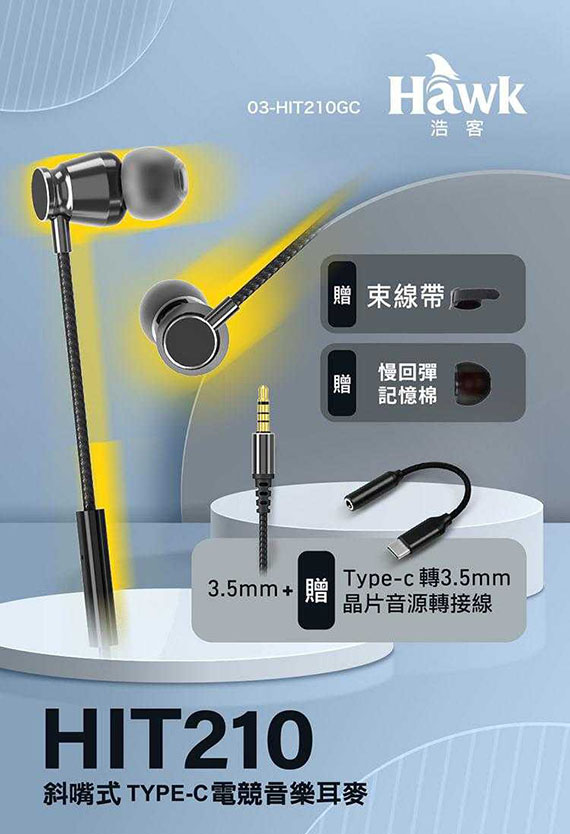 eSENSE逸盛 03-HIT210GCR Hawk 斜嘴式TYPE-C音樂通話 入耳/耳道式耳機麥克風