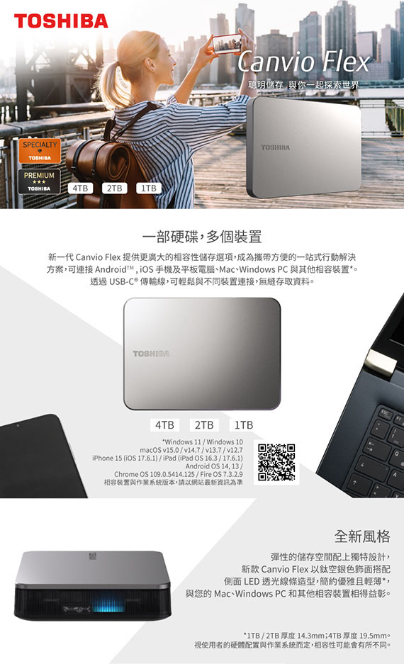TOSHIBA 4TB HDTX240ASCCA 銀 Canvio Flex X2 2.5吋外接式硬碟機(三年保固)