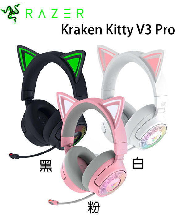 RAZER Kraken Kitty V3 PRO 北海巨妖 白色 三模無線 頭戴式耳機麥克風 (RZ04-05170400-R3M1)