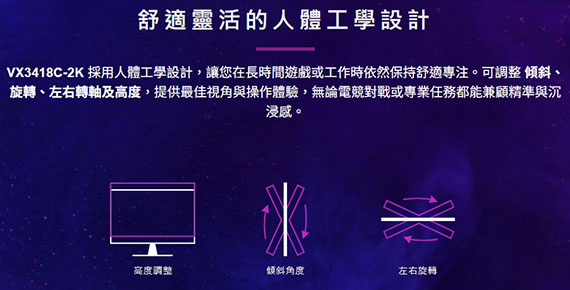 ViewSonic優派 VX3418C-2K 34型 21:9 34吋 2K電競螢幕 (VA/1ms/180Hz/2H2DP/無亮點)