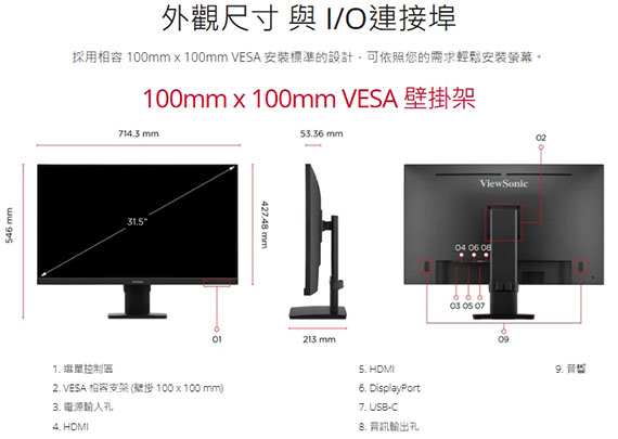 ViewSonic優派 VG3208U-4K 32型 16:9 31.5吋 4K螢幕 (VA/4ms/2H1DP/喇叭/低藍光護眼/HDR10)