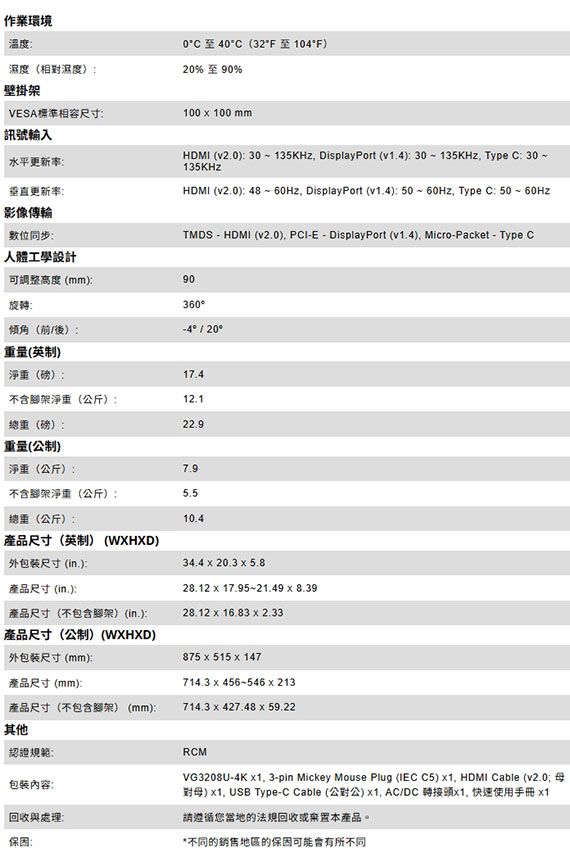 ※以上規格資料或內附配件若有變更或任何錯誤,恕不另行通知,以原廠所公佈資料為準。 |