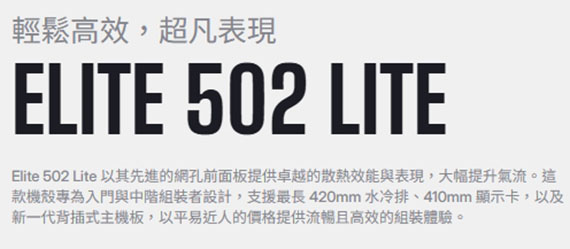 CoolerMaster Elite 502 Lite 黑色 鋼化玻璃透側 M-ATX機殼 (E502L-KGNN-S00)