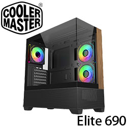 CoolerMaster Elite 690 黑色 木質飾板 全景鋼化玻璃透側 M-ATX機殼 (E690-KHNN-S00)