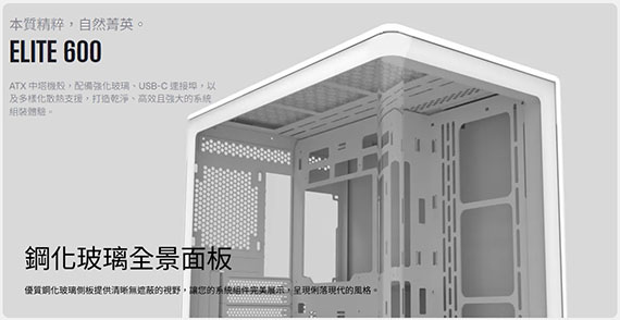 CoolerMaster Elite 600 曲面鋼化玻璃透側 M-ATX機殼 (E600-KGNN-S02)