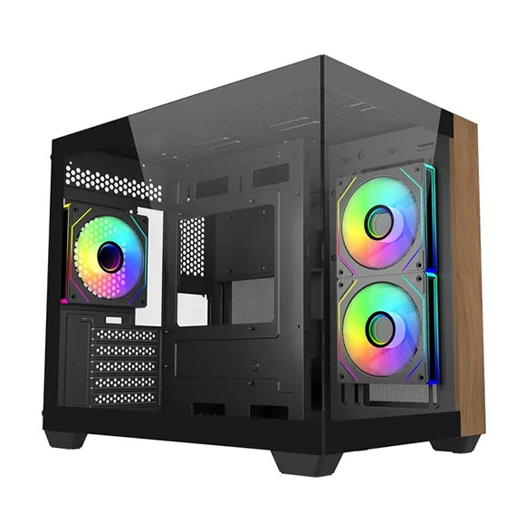 3.5吋*1(最多2個)+2.5吋*2(最多3個),支援主機板:ITX/Micro ATX,PCI擴充槽*5,支援CPU散熱限高160mm,顯卡VGA限長410mm,電源供應器PSU空間240mm,支援風扇(無標示內建即選購):上板120mm*3, 後板120mm*1,側板120mm*2/140mm*2,底板120mm*3,支援水冷(無標示內建即選購):上板120/240/280/360mm,底板120/240/360mm,側板120/240/280mm,I/O介面:1*USB Type C 20Gbps,2* USB 3.0,1x 3.5mm, 天然實木前面板,270° 無邊全景視野,預載ARGB風扇、同步控制,垂直散熱架構,支援RTX 50系列,2年保固