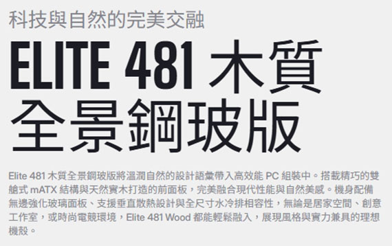 CoolerMaster Elite 481 White 白 木質飾板 全景鋼化玻璃透側 M-ATX機殼 (E481-WHNN-S00)
