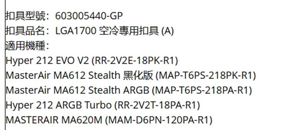 CoolerMaster 603005440-GP 空冷專用 LGA1700 扣具配件 A組