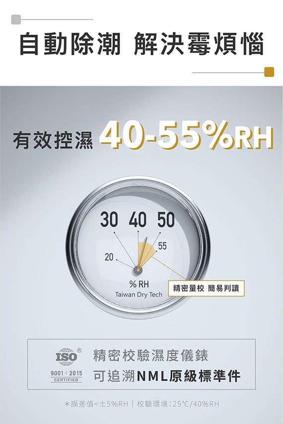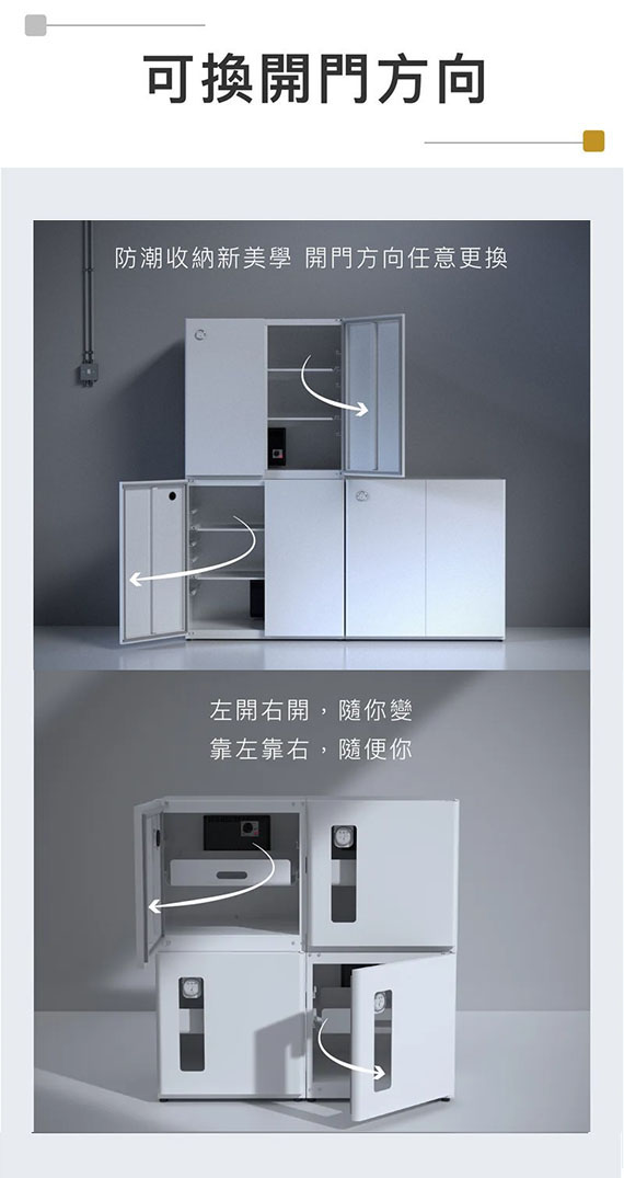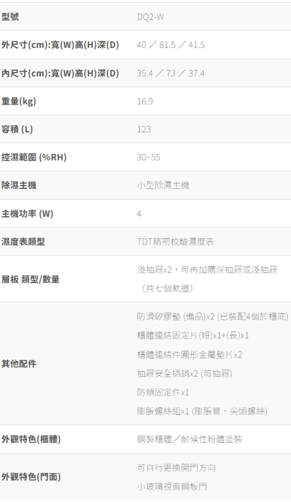 123公升,寬40x高81.5x深41.5cm,控濕範圍(%RH)30~55,TDT精密校驗濕度表,三種尺寸積木組合概念,開門方向自己決定,鋼製抽屜托盤,六年保固