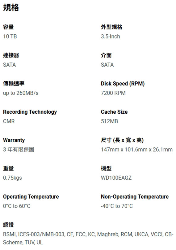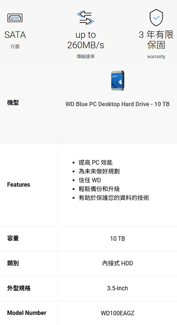 Western Digital威騰 10TB WD100EAGZ 藍標 桌上型硬碟(三年保固) (客訂)