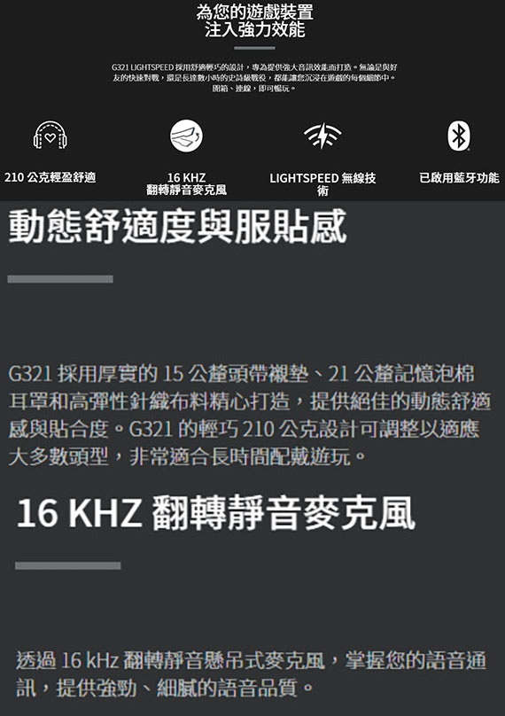 Logitech羅技 G G321 黑色 LIGHTSPEED 雙模無線遊戲 頭戴式耳機麥克風