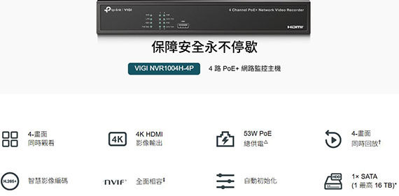 TP-Link NVR1004H-4P(UN) VIGI 4路 PoE+ 網路監控主機