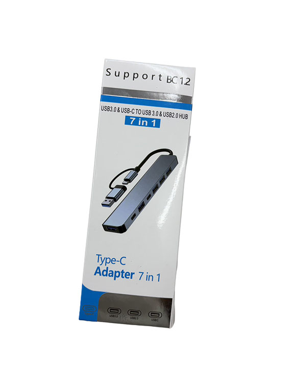USB Type-C介面,附Type-A轉接頭,提供擴充: USB-A2.0*4、USB-A3.0*1、USB-C*2,鋁合金材質