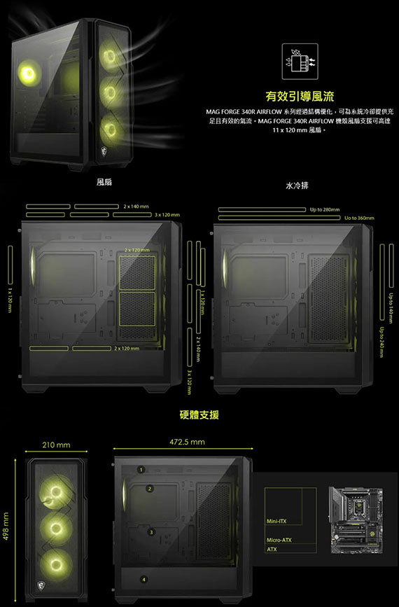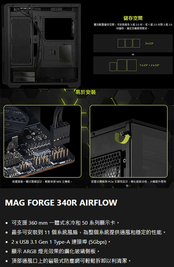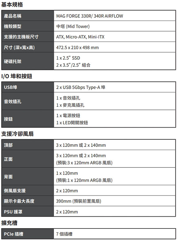 MSI微星 MAG FORGE 340R AIRFLOW 鋼化玻璃透側 ARGB 電競機殼 (限量 促銷價至 12/31 止)