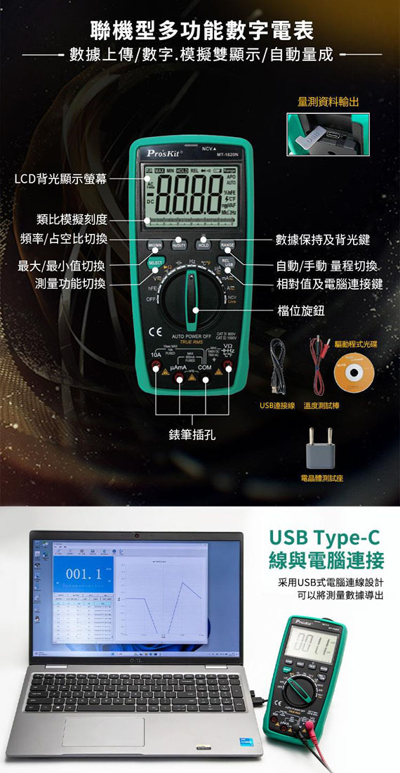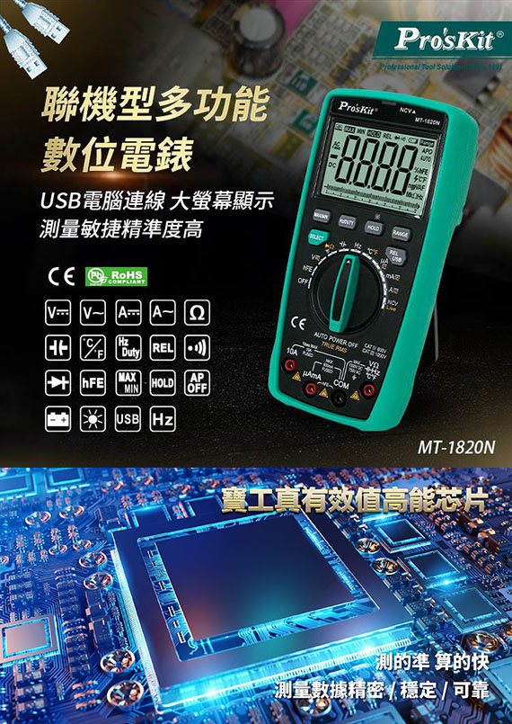 ProsKit寶工 MT-1820N 3-5/6 聯機型數位電錶