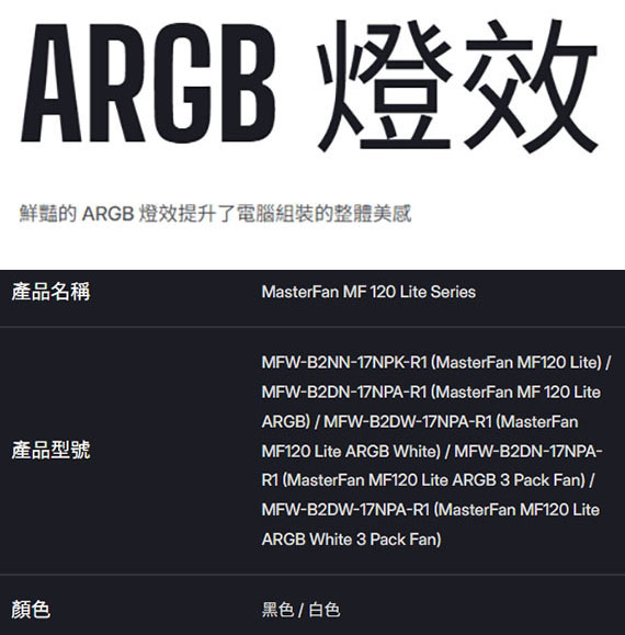 CoolerMaster MasterFan MF120 Lite ARGB White 白 ARGB 12公分風扇 MFW-B2DW-17NPA-R1
