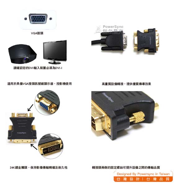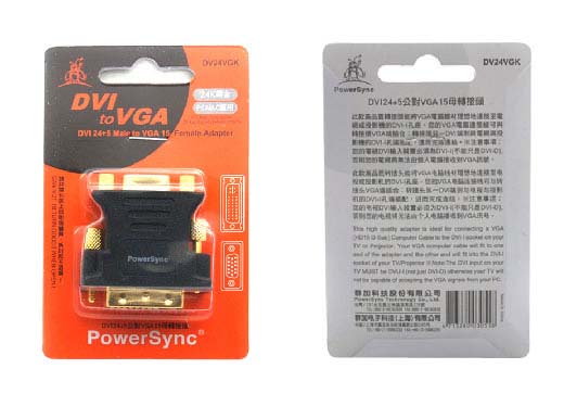 PowerSync 群加 DV24VGK DVI TO VGA 影像轉換頭 DVI 29(24+5)公-VGA 15母