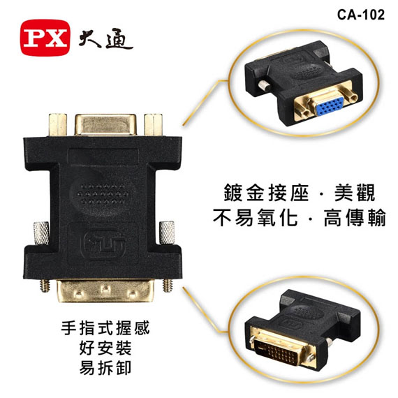 PX大通 CA-102 DVI TO VGA 影像轉換頭 DVI 29(24+5)公-VGA 15母