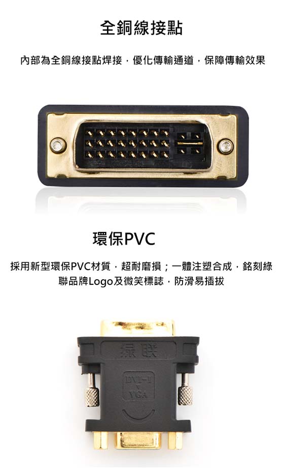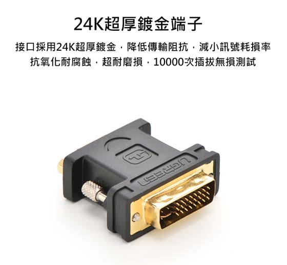 UGREEN綠聯 20122 DVI TO VGA 影像轉換頭 DVI 29(24+5)公-VGA 15母