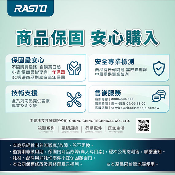 依照消費者保護法規定,本網站消費者均享有商品到貨七天猶豫期之權益,但退貨商品須是全新狀態且包裝完整(商品、包裝、發票、說明書、廠商紙箱及所有出貨時之配件等不得污損或毀傷)。若您訂購的商品並無問題而您要退貨,您必須自行負擔寄回商品的運費。商品如非全新狀態或包裝不完整(如:非原廠紙箱等),本公司有權不受理退貨。