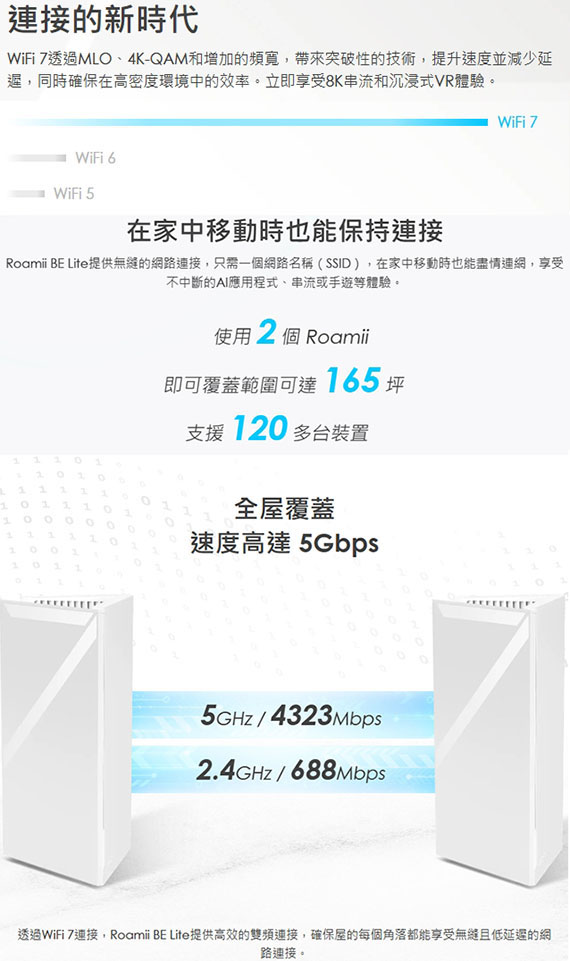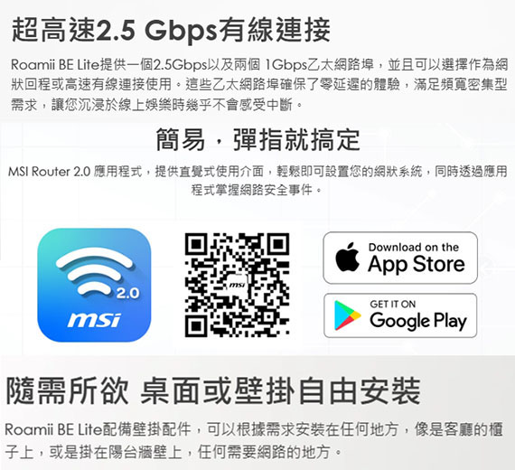 MSI微星 Roamii BE Lite WiFi7 雙頻 Mesh路由器 單入組