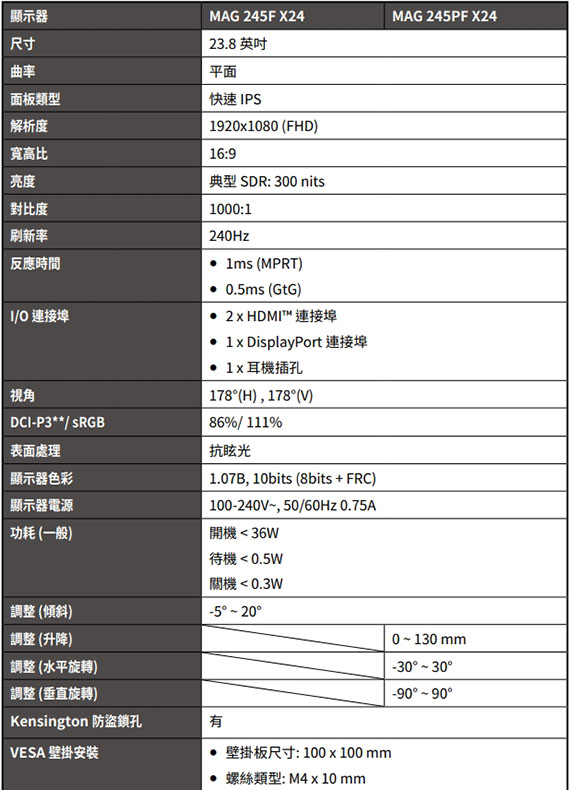 型號 MAG 245F X24