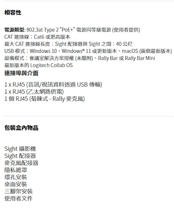 Logitech羅技 VC SIGHT 白色 視訊會議攝影機