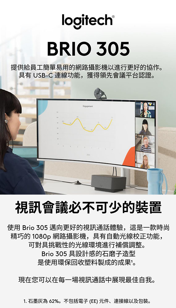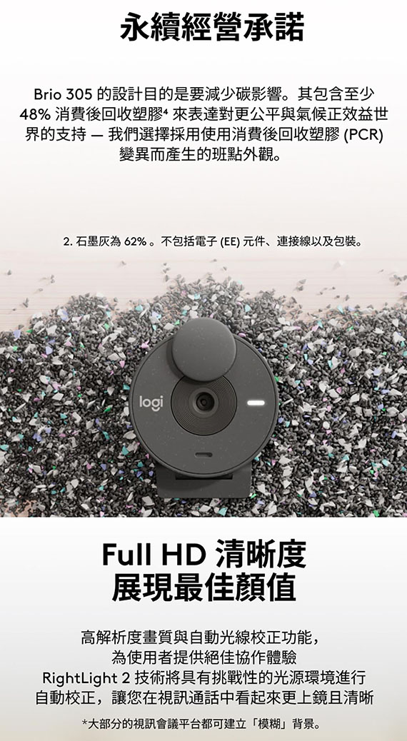 Logitech羅技 BRIO 305 石墨灰 網路攝影機