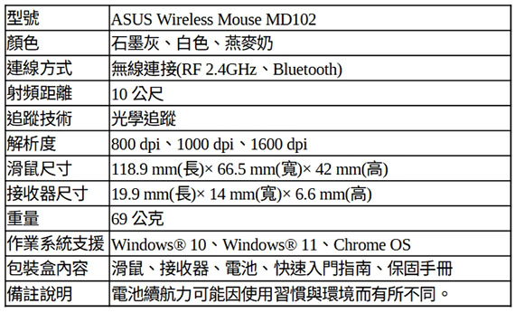 ASUS華碩 MD102 石墨灰 無線滑鼠 90XB0900-BMU000