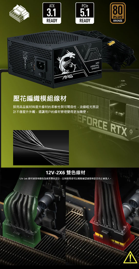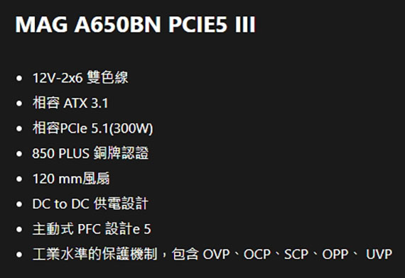MSI微星 650W MAG A650BN PCIE5 III 80PLUS銅牌 ATX3.1 PCIe5.1 電源供應器