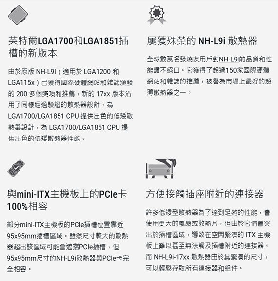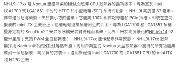 Noctua貓頭鷹 NH-L9i-17xx 家庭劇院電腦 HTPC 超迷你主機專用強效靜音散熱器 LGA1700平台適用 (NF-A9x14 HS-PWM風扇)