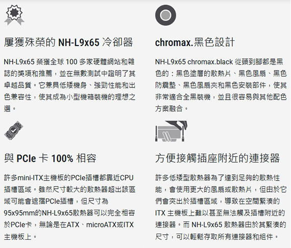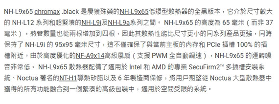 Noctua貓頭鷹 NH-L9x65 chromax.black 黑化 四導管靜音 CPU散熱器 HTPC小型主機專用 (NF-A9x14 PWM風扇)