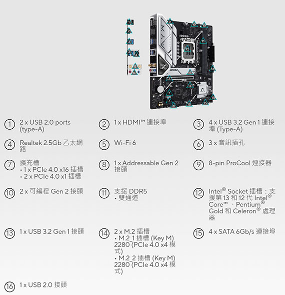 Intel ® Socket LGA1700 適用於第 13代Intel ® Core™ 和第 12代Intel ® Core™、Pentium ® Gold 和 Celeron ® 處理器*