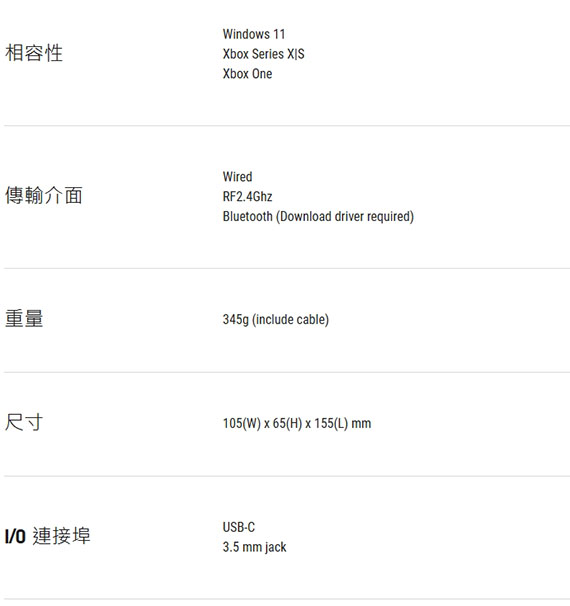多功能三模連接,防漂移TMR搖桿,雙模式板機,微動開關按鈕,I/O埠:USB-C,3.5毫米插孔,2*音訊孔,超長續航2.4 GHz,藍牙5.0,有線USB-C,增強抓握力,1年保固1年換新 NCC認證碼: CCAH25LPB420T1