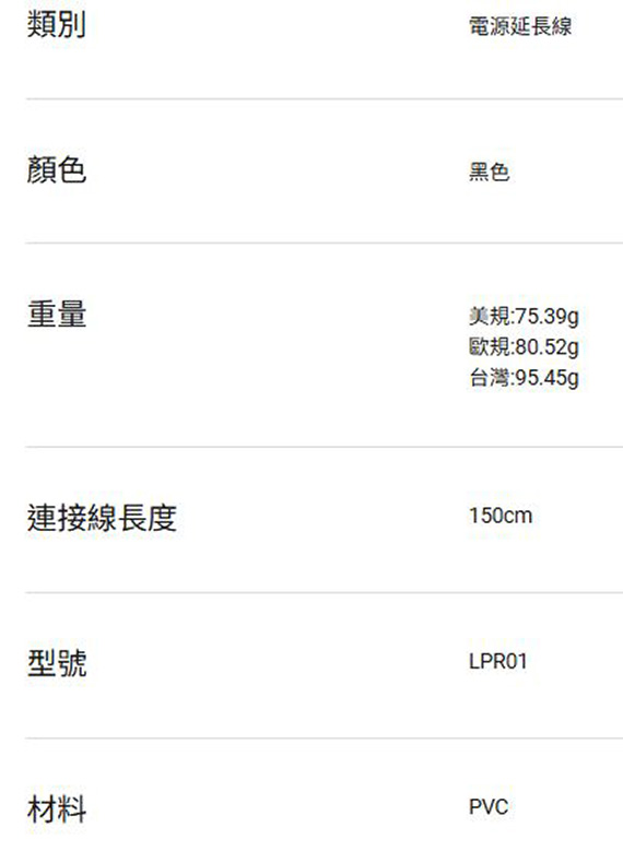 ASUS華碩 LPR01 ROG 黑色 電源延長線 1.5M 90XB09RD-BCA020
