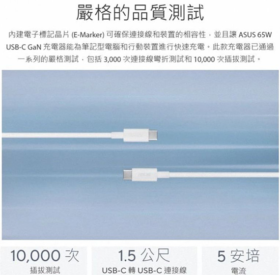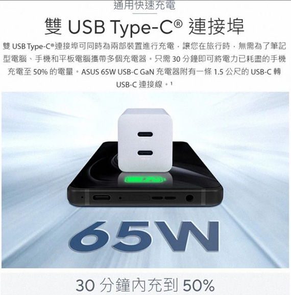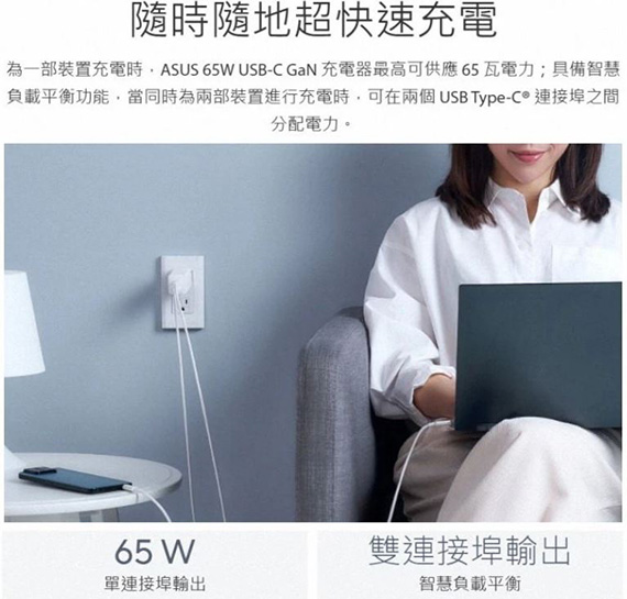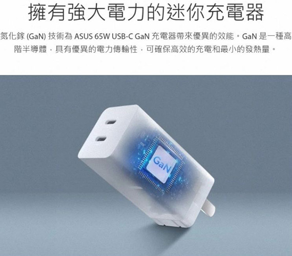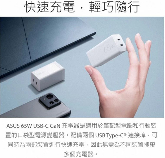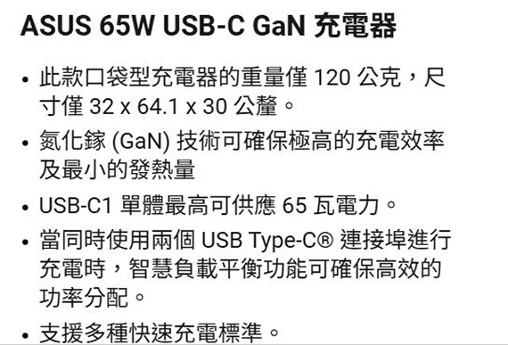 ASUS華碩 AC65-05 USB-C GAN WH 白色 充電器 電源轉換器 90XB09AN-BPW000