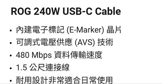ASUS華碩 240W LCR50 ROG 黑色 充電線 USB傳輸線 C公-C公 1.5M 90XB09MN-BCA000