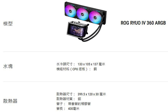ASUS華碩 ROG RYUO IV 360 ARGB 龍王四代 一體式CPU 水冷散熱器