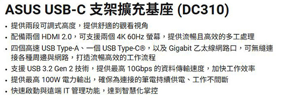 ASUS華碩 USB-C Stand Dock DC310 10合1 支架擴充基座 90XB099N-BDS010