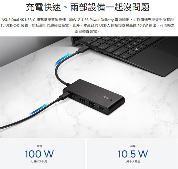 ASUS華碩 Dual 4K USB-C Dock DC201 五合一 擴充基座 90XB094N-BDS000