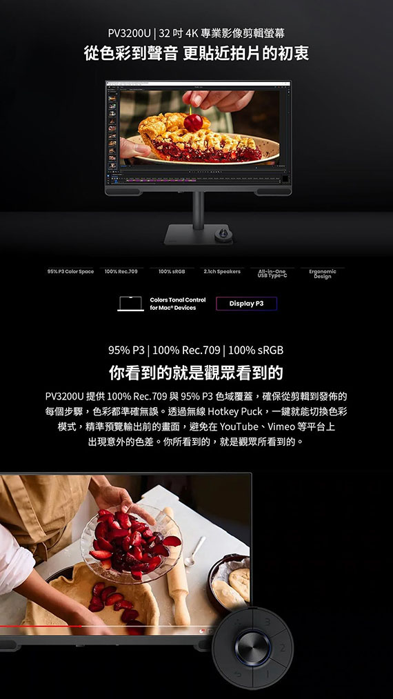 BenQ明基電通 PV3200U 32型 16:9 31.5吋 4K專業影像剪輯螢幕(IPS/5ms/60Hz/3H1C/喇叭/可升降、旋轉)