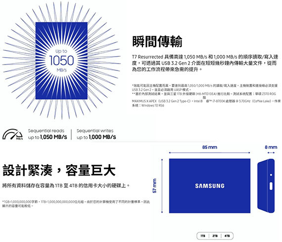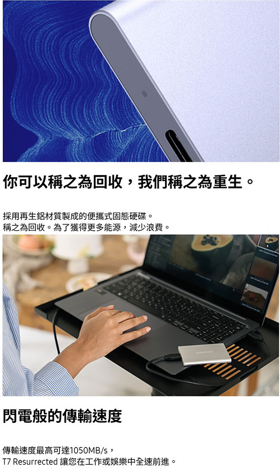 SAMSUNG三星 1TB MU-PD1T0G/WW 銀色 T7 Resurrected 外接式SSD硬碟機 (三年保固)