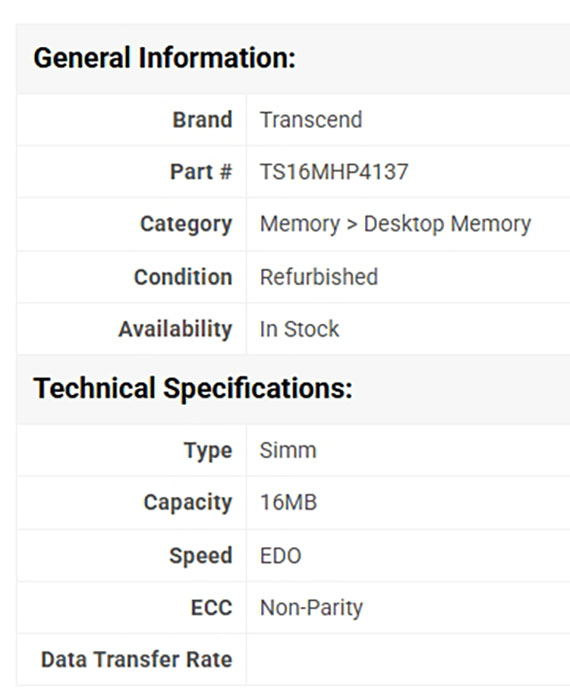 Transcend創見 TS16MHP4137/16MB EDO(限量售完為止)