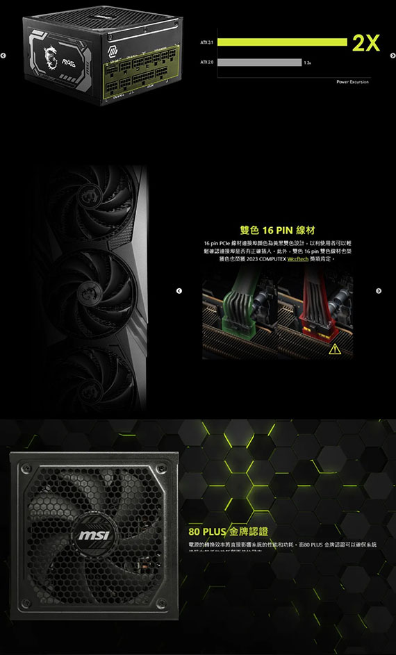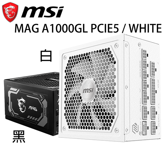 MSI微星 1000W MAG A1000GL PCIE5 WHITE 80PLUS金牌 全模組化 ATX3.1 PCIe5.1 電源供應器