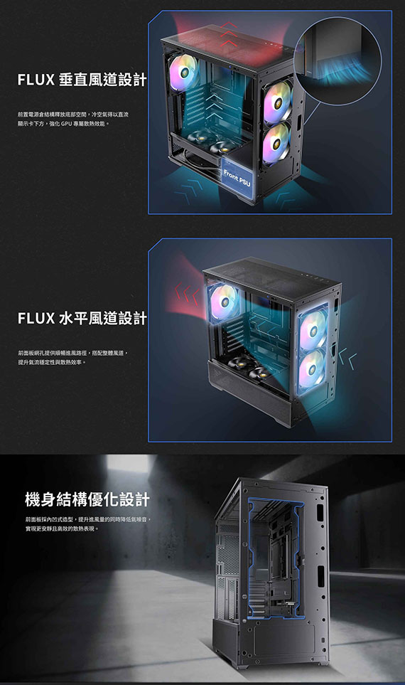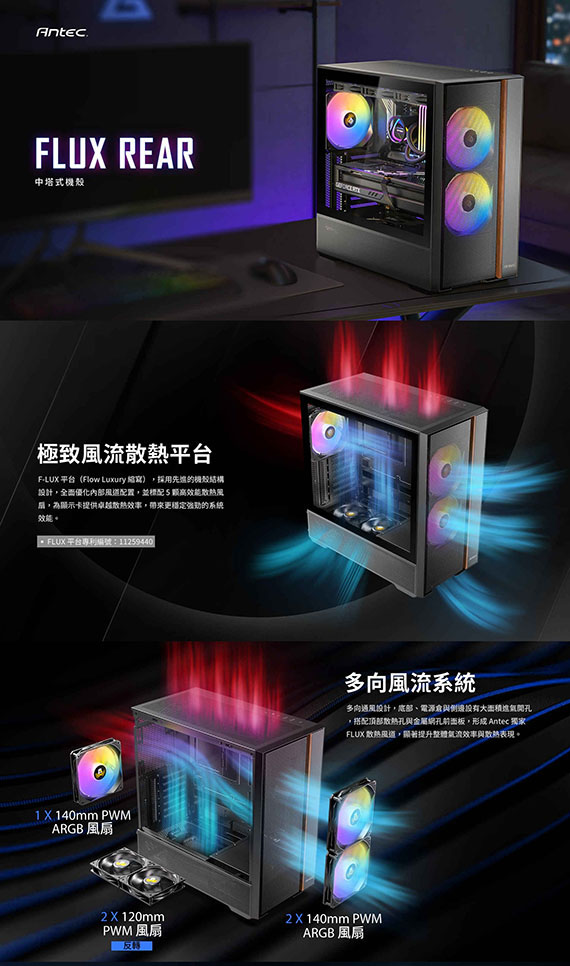 ANTEC安鈦克 FLUX REAR(B) 黑 玻璃透側 ATX機殼