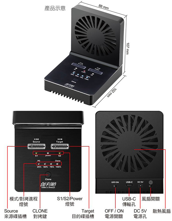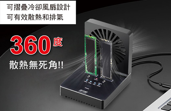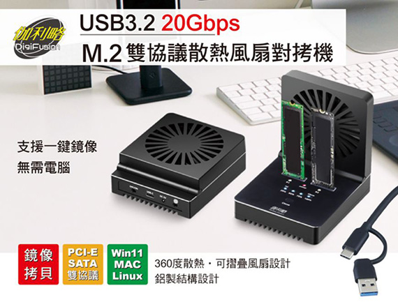 DigiFusion 伽利略 DMC322E 散熱風扇 1對1 M.2雙協議 USB3.2 Type-C 20Gbps 對拷機