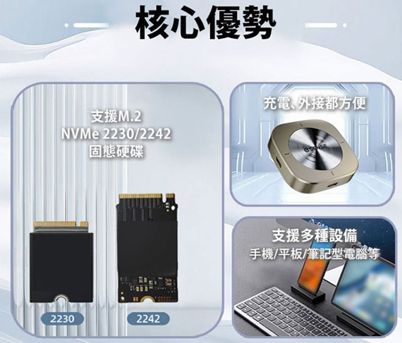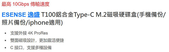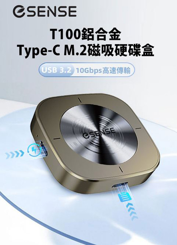 eSENSE逸盛 07-EST100 T100 鋁合金Type-C M.2磁吸硬碟盒