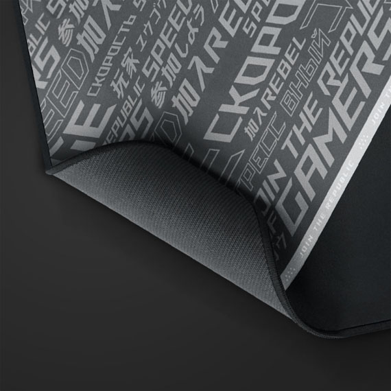 ROG Sheath BLK 特大面積滑鼠墊,為遊戲強化的表面材質、抗磨損車邊縫線 以及防滑橡膠底面設計