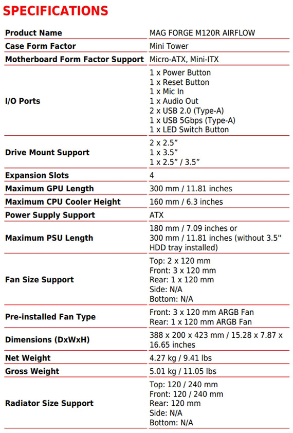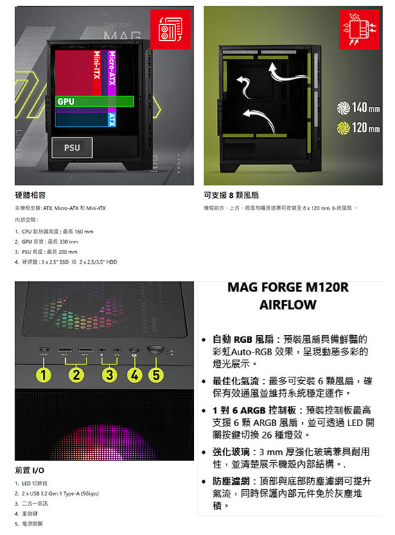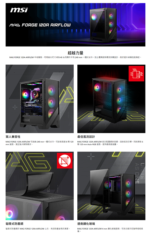 MSI微星 MAG FORGE M120R AIRFLOW 鋼化玻璃透側 ARGB 電競機殼